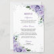 Personnalisez cette feuille de papier du menu rose à double face violet lavande argent floral à double face, cliquez simplement sur le bouton Modifier à l'aide des outils de conception pour modifier le texte, le libellé, le style de police, la taille de police, la couleur de police, ajouter du texte, déplacer ou supprimer des images. Customisez-le pour convenir à votre occasion. Parfait pour les mariages, douches nuptiales, Quinceañeras, Sweet 16s, 18th Birthdays, Bat mitzvah, boules Debutante, Baptimes / Christenings et plus d'occasions! Objets correspondants disponibles en magasin ! c) Jamais après le Mariage