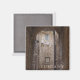 Aimant photo souvenir d'une ruelle en Toscane avec lessive suspendue pour sécher devant un mur en brique en Italie avec le texte : 'Toscane'.