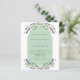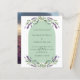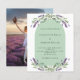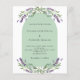 Un arrière - plan blanc et sage vert décoré de fleurs de lavande violette, de verdure d'eucalyptus et d'un cadre en arc de cercle. Personnalisez et vos noms et détails. Retour : Personnalisez et ajoutez votre photo. 1 feuille = 1 invite imprimé bord à bord.