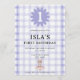 Perfect for baby's first birthday, this invite features an adorable ballerina bunny with a charming watercolor check background.