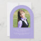 Ce faire-part de graduation en arc de lavande simple minimaliste dispose d'un cadre en arc délicat, 2 modèles photo et élégante typographie moderne.