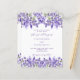 Un arrière - plan blanc décoré de fleurs de lavande. Personnalisez et vos noms et détails. Retour : ajoutez l'URL de votre site Web mariage au code QR pour plus de détails et/ou RSVP. 1 feuille = 1 bord imprimé faire-part de mariage à bord.