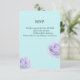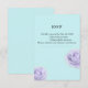 A light blue response card featuring centered black text for guest attendance and dietary requirements, accented by soft purple roses in the bottom corners. elegant lavender rose rsvp, light blue response card, floral wedding reply card, botanical guest response stationery, centered rsvp text layout.