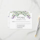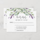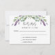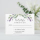 Un arrière - plan blanc, du texte noir. Décoré de fleurs de lavande et de verdure d'eucalyptus. Personnalisez et ajoutez une réponse par date. Retour : ajoutez votre URL de site mariage au code QR et un texte.
