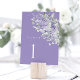 This lavender table number card features soft watercolor florals in layered lavender tones with sage green foliage, creating an elegant and refined look for wedding reception tables.