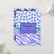 Customisez cette invitation sophistiquée pour une fête du 60e anniversaire ou un autre événement. Le design associe lavande périwinkle violet et rayures zèbres blanches et peaux de léopard ou de guépard pour un design moderne et tendance. Un emblème de lavande violet surligné en noir sur une barre bleu turquoise turquoise et crée une zone de personnalisation, avec le nom de la fille d'anniversaire et les mots "60e fête d'anniversaire" qui peuvent être customisés à d'autres mots. Le verso de l'invitation comprend des champs pour toutes vos informations pour votre parti. Vous pouvez facilement modifier et supprimer des champs si nécessaire. Les couleurs sont la lavande périvent, le blanc, le bleu turquoise turquoise, le noir et le vert citron. Peaux d'animaux sauvages pour le design graphique est un art chaud et tendance design, et est extrêmement populaire de la mode à la décoration maison. Cette collection sophistiquée de zèbres et d'empreintes de léopard est l'une des nombreuses combinaisons de couleurs disponibles pour votre choix d'invitations et de coordonnées avec d'autres produits pour une soirée élégante.