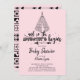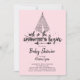 Cute Tribal the Adventure commence l'invitation baby shower avec un tipi avec une citation de typographie "et donc l'aventure commence pour une fille baby shower en rose.