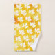 Lavage moderne blanc feuille d'érable jaune aquarelle et ensemble de serviettes de bain monogramme. La serviette de bain est munie d'une bordure de feuilles d'érable blanc sur le lavage à l'aquarelle jaune et votre monogramme dans un cadre avec contour placé au centre. La serviette à main présente un motif des feuilles d'érable et le linge est recouvert d'une pellicule d'aquarelle jaune.