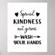 Cette affiche d'art de la salle de bains en papier, mignonne et lettrée à la main, comprend la citation : "Propose de la gentillesse, pas des germes. Lave-toi les mains." Utilisez comme panneau de salle de bain dans votre maison ou votre entreprise pour inspirer la propagation de la gentillesse tout en encourageant une hygiène correcte.