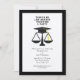 Creative law school grad party invites featuring unique design and funny lawyer humor.
