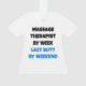 Ce design de texte avec l'expression "Massage Therapist by Week Lazy Butt by Weekend" est parfait pour toute personne qui est un massothérapeute travailleur toute la semaine mais un cul paresseux une fois le week-end roulé autour.