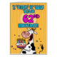 " Je "le vis en troupe" étais votre soixante-deuxième anniversaire !" vache à b-jour d'amusement tenant une carte de voeux de gâteau d'anniversaire.