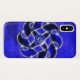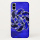 Une oeuvre abstraite en bleu et argent. Un joyau bleu clair est entouré de vagues argentées accentuées de saphirs étincelants et d'étoiles blanches. Les fractales ondulantes en spirale de l'arrière - plan apparaissent dans des couleurs plus profondes à l'intérieur du filigrane argenté du motif d'onde.
