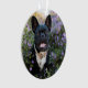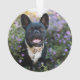 Un Bulldog français est en fleurs à l'extérieur et regarde avec joie la caméra.