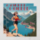 Vous courrez sur de hautes montagnes et faites des courses ultra-courantes à cause du café et du café seul. Ce superbe design montre un coureur dans les montagnes dans le style d'une affiche de voyage rétro vintage.