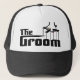 C'est le classique "casquette de parodie du marié" ! Un grand cadeau de bâillon de mariage pour le marié, comportant la main de l'épouse avec l'anneau de mariage et le vernis à ongles tenant la marionnette ficelle… qui est attachée au marié de mot.