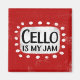 "Cello Is My Jam" est un design de texte amusant avec une forme d'accent blanc entourée de points blancs texturés.