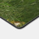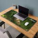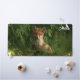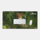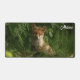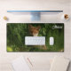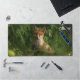 Tapis de bureau avec une photo représentant un mignon petit renard à fourrure rouge et blanche. Entouré de feuilles et d'herbes verdoyants.