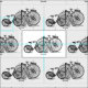 Une grande illustration vintage des bicyclettes fait un beau tissu nostalgique concevoir. Noircissez sur le blanc, ou customisez avec la couleur d'arrière - plan de votre choix.
