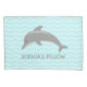 Le dauphin bleu et gris d'aqua personnalisé badine la taie d'oreiller de chambre à coucher. Caisse mignonne de coussin pour la pièce d'enfants avec les poissons/mammifère gris. Décor fait sur commande nautique/de plage thème de maison pour l'enfant. Ajoutez votre propre citation ou monogramme nommée et drôle. Conception d'illustration de côté de mers pour le fils, la fille, le petit-fils, le neveu, la conception neutre de genre de l'petit-enfant etc. pour le garçon ou la fille. Arrière - plan fait sur commande de couleur derrière le motif de chevron. Copie de zigzag. Idée de cadeau unique d'anniversaire ou de Noël.