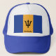 Le drapeau national des Barbade a été officiellement adopté le 30 novembre 1966, le premier Jour de la Déclaration d'Indépendance de l'île. Il se compose d'un triband de deux bandes d'ultramarine séparées par une bande moyenne d'or. Une trident-tête noire (généralement appelée "le trident cassé") est centrée dans la bande d'or. Le drapeau a été conçu par le professeur d'art local Grantley Prescod, et a été choisi d'environ 1000 conceptions après un concours au niveau insulaire. On dit que les deux bandes bleues se tiennent pour l'océan, alors que l'or est pour le sable sur l'île. Le trident est pris du vieil insigne colonial, qui a montré Britannia tenant un trident, la partie plus inférieure cassée symbolise une coupure symbolique avec ses cravates historiques et constitutionnelles en tant qu'ancienne colonie. [1] Les trois points du trident représentent les trois principes de la démocratie - gouvernement, pour, et par des personnes.