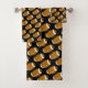 Voici une grande serviette de bain réglée qui comporte les football bruns et blancs volant par l'air.
