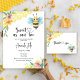 Le genre des abeilles révèle la carte de remerciements avec des petites abeilles mignonnes. Objets correspondants disponibles ! Famille Invitation et amis pour célébrer l'arrivée prochaine de votre bébé avec cette fête de baby shower à thème aquarelle bee fleurie ! Doux comme peut être une invitation baby shower. Personnalisez avec vos informations. Éléments correspondants disponibles.
