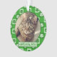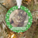 Cet ornement rond mignon d'arbre de Noël est parfait pour votre chat préféré de minou. La frontière a un motif de guingan de visage de chat dans le vert, et vous pouvez facilement ajouter la photo et le nom de votre minou au centre.