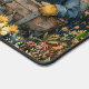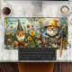 Tapis de bureau avec une peinture colorée d'un jardin avec des gnomes. Mignon et magique pour tous ceux qui aiment jardiner et faire pousser des fleurs et des légumes.