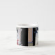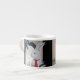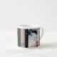 Tasse adorable d'expresso comportant un lapin blanc dans un casquette supérieur errant les rues de Paris dans son cravate élégant. La peinture est un composé d'une carte de Pâques vintage (circa 1909) et d'une affiche vintage de voyage de Paris.