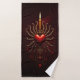 Le magnifique art de l'élégance gothique. Design romantique avec un motif central d'une bougie brûlante sertie dans un cadre en forme de coeur. La bougie est entourée de branches complexes, dorées, comme des araignées, et le coeur est orné de bijoux rouges. L'arrière - plan est un cramoisi profond, et l'image est encadrée par un défilement doré orné avec des accents rouges dégoulinants. L'ambiance générale est celle de l'élégance gothique et du mystère.