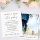 Un logement abordable ou un petit faire-part mariage pour informer la famille et les amis que vos plans de mariage ont changé, et vous avez fui ou réduit le nombre d'invités à votre mariage, et de les invitations à une réception de mariage ou à une fête de célébration. L'avant présente "Happily Ever After Party" dans un mélange de typographie simple et d'un script élégant avec des swashes, et vous pouvez personnaliser votre message et invitation en détail et vos noms dans un script signature. Au verso, vous trouverez votre photo de mariage préférée, vos prénoms et votre date de mariage.