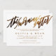 C'est un beau produit avec typographie le matin après le brunch post-mariage invitation design en or.