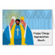 Joyeux clergé Appréciation Mois papier carte de voeux avec l'illustration d'un prêtre bénissant l'Eucharistie en préparation à la communion. Les grandes formes et couleurs audacieuses contrastent avec les éléments de fenêtre détaillés. copyright © Shoaff Ballanger Studios, 2025.