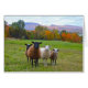 "Vermont Sheep in Autumn" de Catherine Sherman. Les moutons portent leur lourd manteau de laine à l'automne, prêts pour l'hiver prochain dans la région du Vermont Nord connue sous le nom de Royaume du Nord. Dans l'arrière - plan, un lac glaciaire est entouré d'arbres aux couleurs d'automne brillantes.