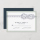 Conçu pour s'adapter à nos invitations de mariage et accessoires The Blue Knot, ce mariage nautique chic RSVP présente une illustration de noeud à main de style vintage en bleu marine. Parfait pour les mariages de plage, d'été, nautiques ou de la partie côtière Ce design fait partie d'une collection, veuillez visiter notre magasin pour les articles correspondants. Pour une demande personnalisée, veuillez nous contacter à l'adresse citronelladesign@gmail.com