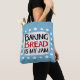 "Baking Bread Is My Jam" est un design de texte mignon en bleu avec du texte en noir et rouge, avec une forme d'accent blanc et des points blancs texturés blancs qui l'entourent.