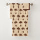 La serviette a placé dans une interprétation de Digitals d'une paume de sagou mise en pot dans un planteur décoratif avec une frontière solide - brun chocolat foncé avec un fond beige clair