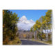 Photographie de Moose Wilson Road se dirigeant vers le parc national du Grand Teton à l'automne, avec Grand Teton couvert de neige au loin.