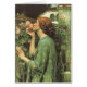 Une jeune femme aux cheveux rouges foncés se dirige vers le haut vers un rose d'escalades pour sentir le parfum. Art du XIXe siècle par John William Waterhouse.