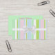 Ce joli carte de visite est parfait pour n'importe quelles affaires ou profession. Il comporte les rayures de vert, de rose, de bleu, et blanches sur l'avant. Un ruban et un arc courus par le centre. Un graphique d'une opale se repose au centre de l'arc. Le dos est un vert solide. Tout le texte est personnalisable.