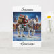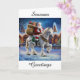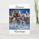 Apportez un charme de vacances intemporel à vos célébrations avec cette carte de Noël de style vintage avec le Père Noël chevauchant majestueusement sur un cheval Clydesdale fort à travers le paysage enneigé. Avec son sac de cadeaux accroché au-dessus de son épaule, Père Noël saisit la magie d'un Noël traditionnel dans une scène nostalgique pleine de charme. Parfait pour envoyer des voeux chaleureux à la famille et aux amis, cette carte est un beau souvenir qui incarne l'esprit de la saison.