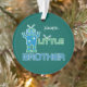 Les garçons de petit frère de robot ont personnalisé l'ornement de Noël de frères d'enfants. Personnalisez cet ornement orienté de robot dans le blanc bleu. Image d'un robot mignon dans les bleus et les verts avec le PETIT FRÈRE de libellé. L'arrière - plan est vert-foncé et peut être changé en choisissant la PERSONNALISER. L'amusement a personnalisé des ornements de Noël de souvenir d'enfant de mêmes parents pour le plus jeune frère de bébé, frère. Coordonnez avec de petits et moyens cadeaux de frère ou de soeur.