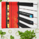 Serviette de thé avec la vue posterized du piano avec les clés noires et blanches de piano et le cadre jaune et rouge de piano.