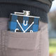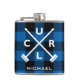 Flacon comportant les balais de bordage croisés dans le blanc sur l'arrière - plan bleu de plaid de buffle. Perfectionnez pour des bigoudis et des fans de bordage. Personnalisez avec votre nom.