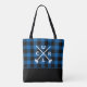 La caractéristique de sac fourre-tout a croisé les balais de bordage dans le blanc sur l'arrière - plan bleu de plaid de buffle. Perfectionnez pour des bigoudis et des fans de bordage.
