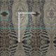 Le motif sur ce tissu vient d'une photo des voies faites par un tracteur entraînant une réduction un chemin d'exploitation de saleté. Les impressions de pneu forment les rayures en zig-zag et les lignes de wavey dans ce tissu coloré bronzage.