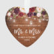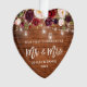 Bois rustique, Script de brosse moderne, Floral de marsala bordeaux aquarellisé, Notre premier Noël en tant que Monsieur et Madame Mariage ornement avec lampes à cordes de mâchoires
