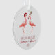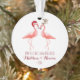 Notre premier Noël engagé ou ensemble ou marié comportant deux ou trois flamants drôles habillant le renne rouge de casquette de Père Noël et de nez de Rudolph.