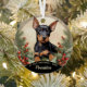 Un mignon chiot Doberman Pinscher pose pour son premier Noël. Nom, année et photos sont facilement personnalisées. Vous n'avez pas de photo du nouveau Doberman Pinscher de votre être cher ? C'est cool. Les deux côtés de cet ornement sont déjà préparés avec des photos pour le don.